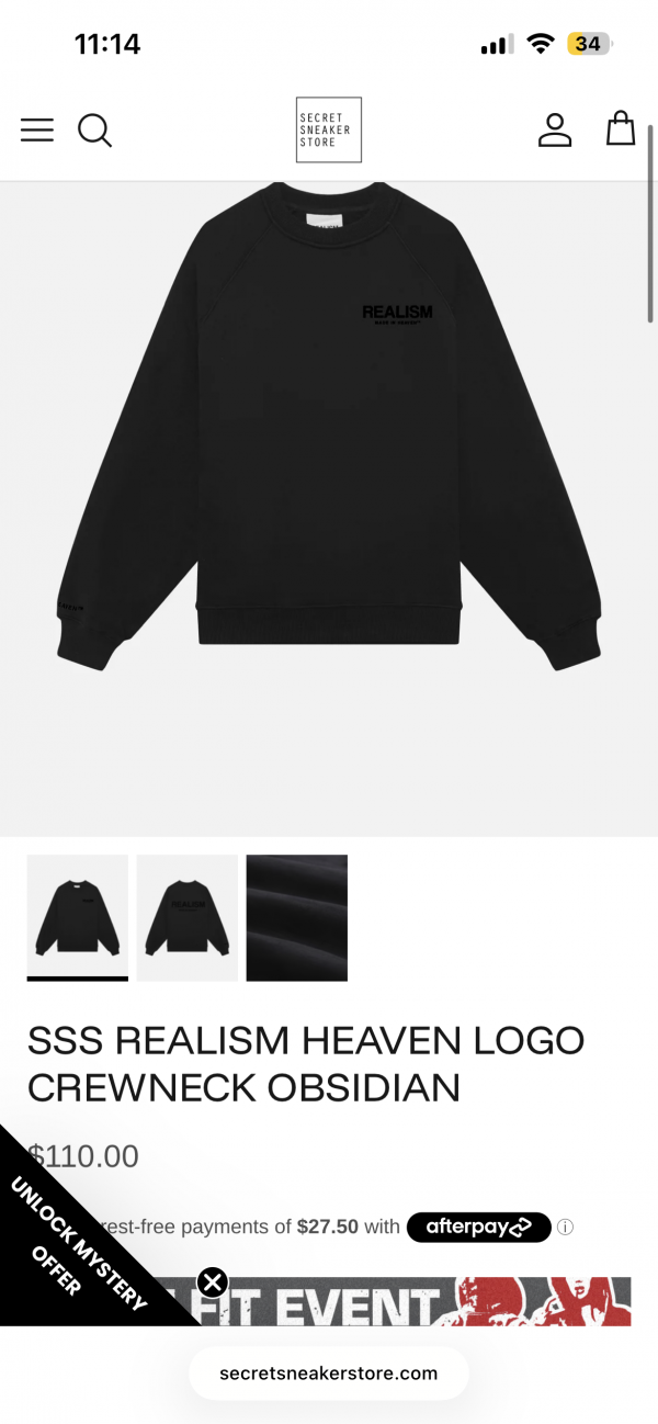 한두번 입은 Realism crewneck 팝니다.