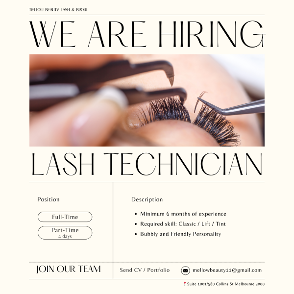 Mellow Beauty 시티 뷰티샵에서 함께 일하실 속눈썹 테크니션을 구합니다!