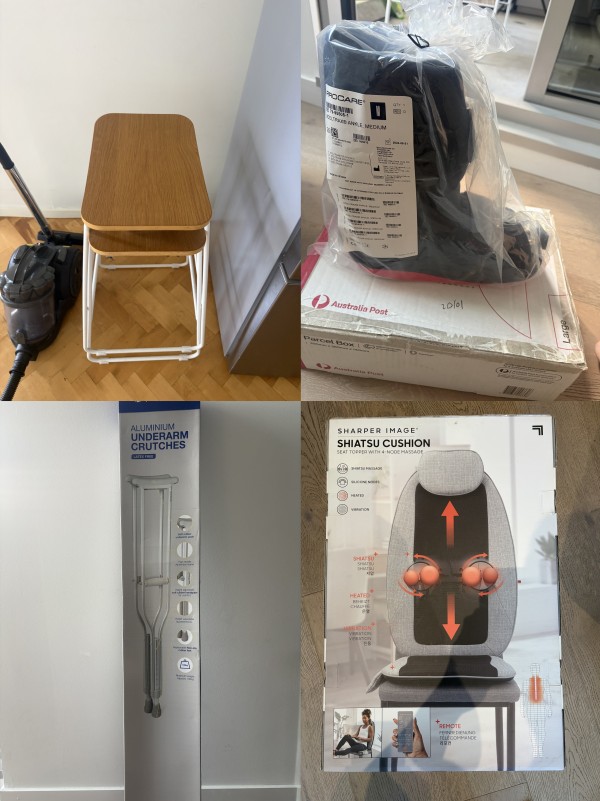 하이체어, 반깁스(cam walker), 목발, 시아추 쿠션의자 팝니다