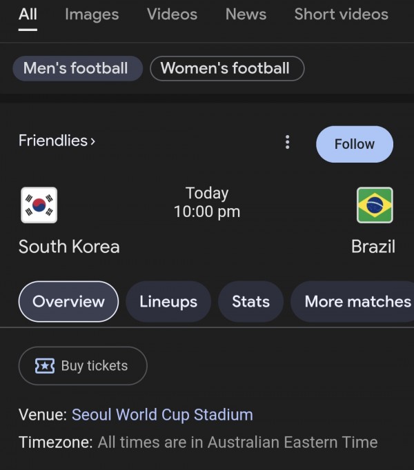 저녁 10시 한국 VS 브라질 축구