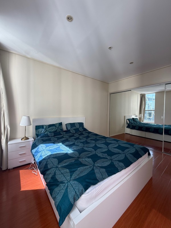 수납공간 넉넉하고 햇살이 잘 들어오는 밝은 방입니다.