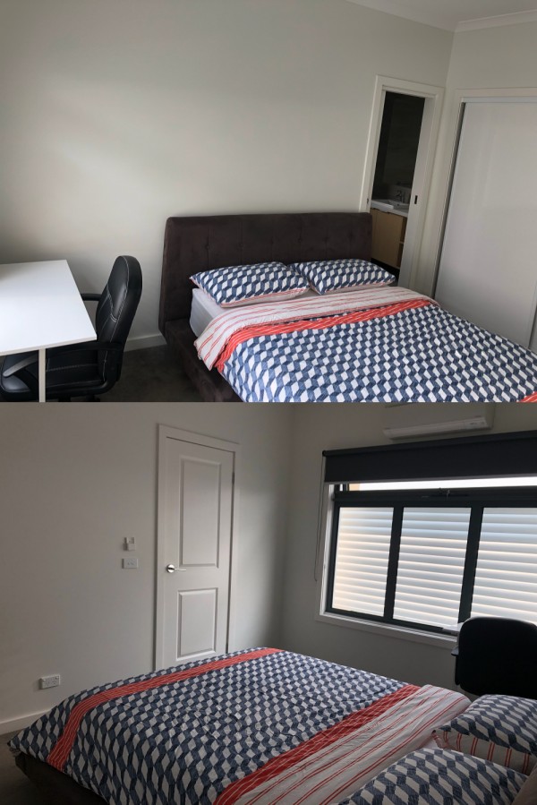 마스터룸 가구는 방에 퀸침대로 들어가구요 침대,침대베이스 퀄리티 좋습니다 그리고 옷장이 다 방안에 있어서 수납공간이 충분할거같아요 안쓰는 캐리어나 박스등등이있으면 쉐드가따로있어서 그안에 다 보관하시면되요^^. 스터티책상이랑 의자있구요 이불배게나 모든커버등등 있습니다. 샤워룸도 커서 좋을거예요! 인터넷(무제한 텔스트라) 빠르고 끊김없이 잘되요 그리고 전기세다 빌포함이구요. 기본 주방세제하며 주방용기들 다 쉐어해요 일반가정집처럼 모든게 다있으니 요리하시기에도 좋을거같아요 ^^